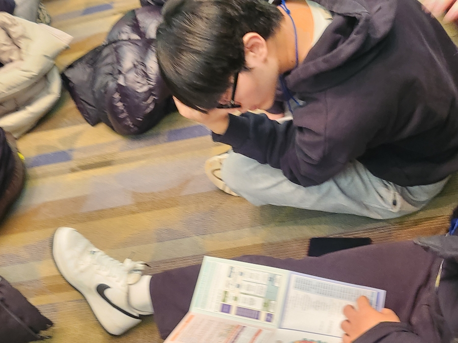 (사진 : 가이드북 내용을 살펴보며, 학부 소개 내용을 경청하고 있습니다)