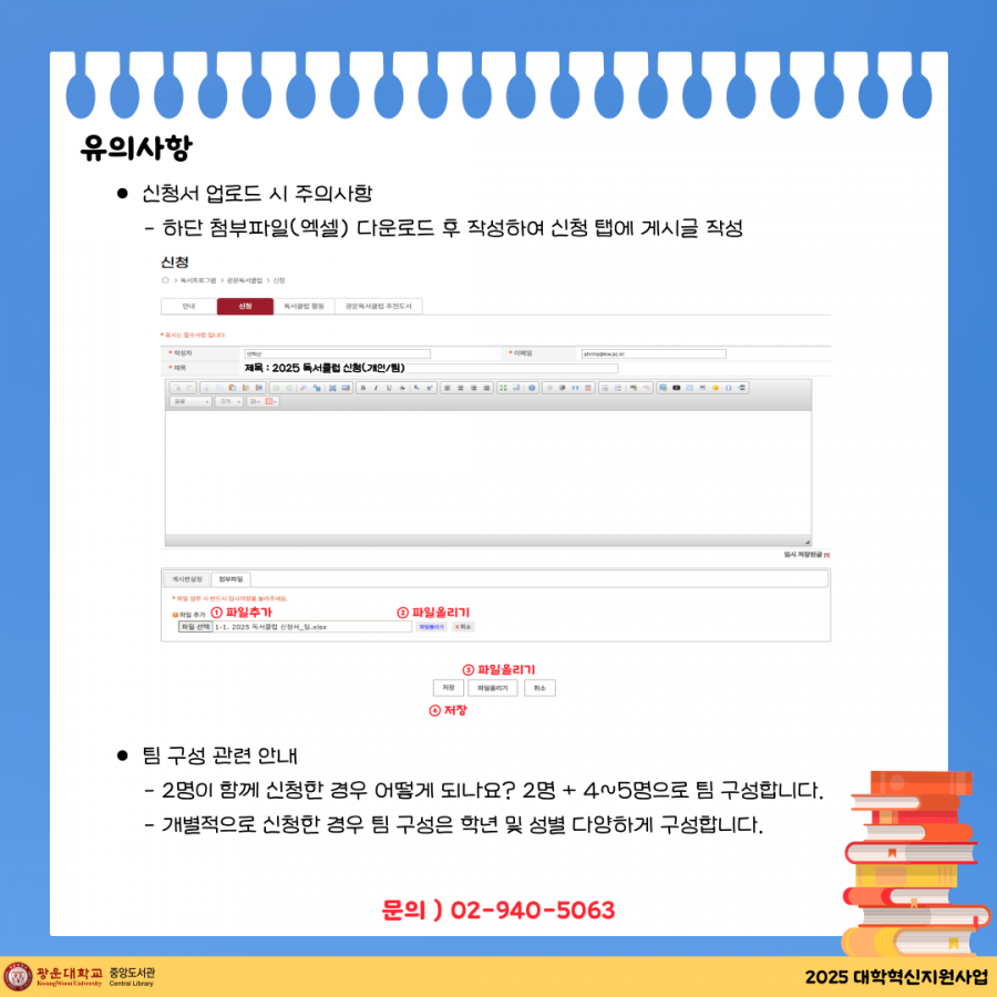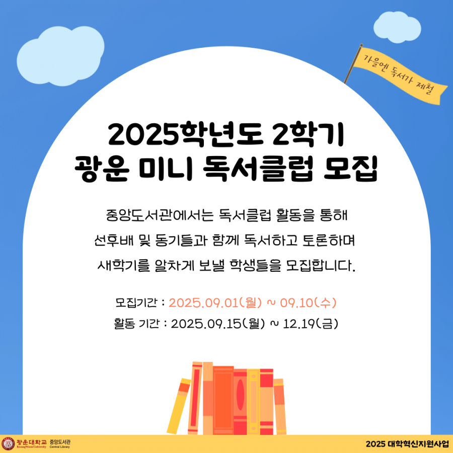 중앙도서관에서 2025학년도 2학기 광운 미니 독서클럽 참가자를 모집합니다.