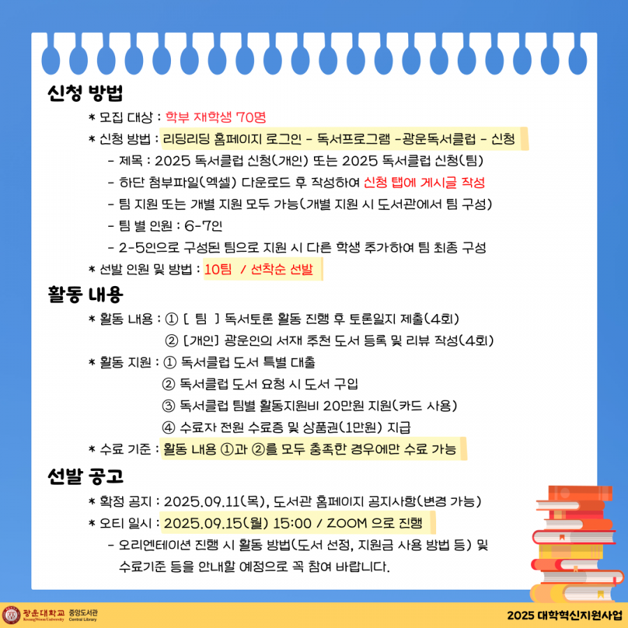 [대학혁신지원사업] 2025학년도 2학기 광운독서클럽 참가자 모집 안내